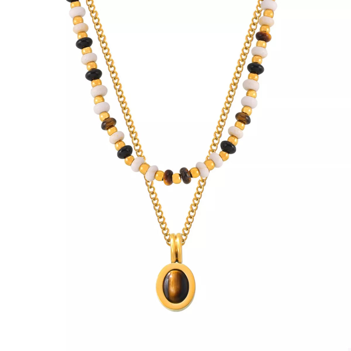 2 Piece Natural Stone and Gold Chain Necklace with Pendant