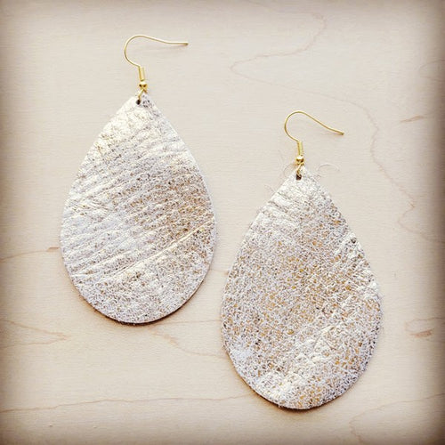 Leather Teardrop Earring-Heavy Metal White