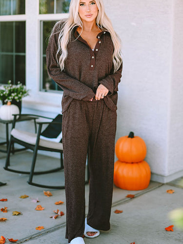 Buttoned Long Sleeve Top and Long Pants Lounge Set