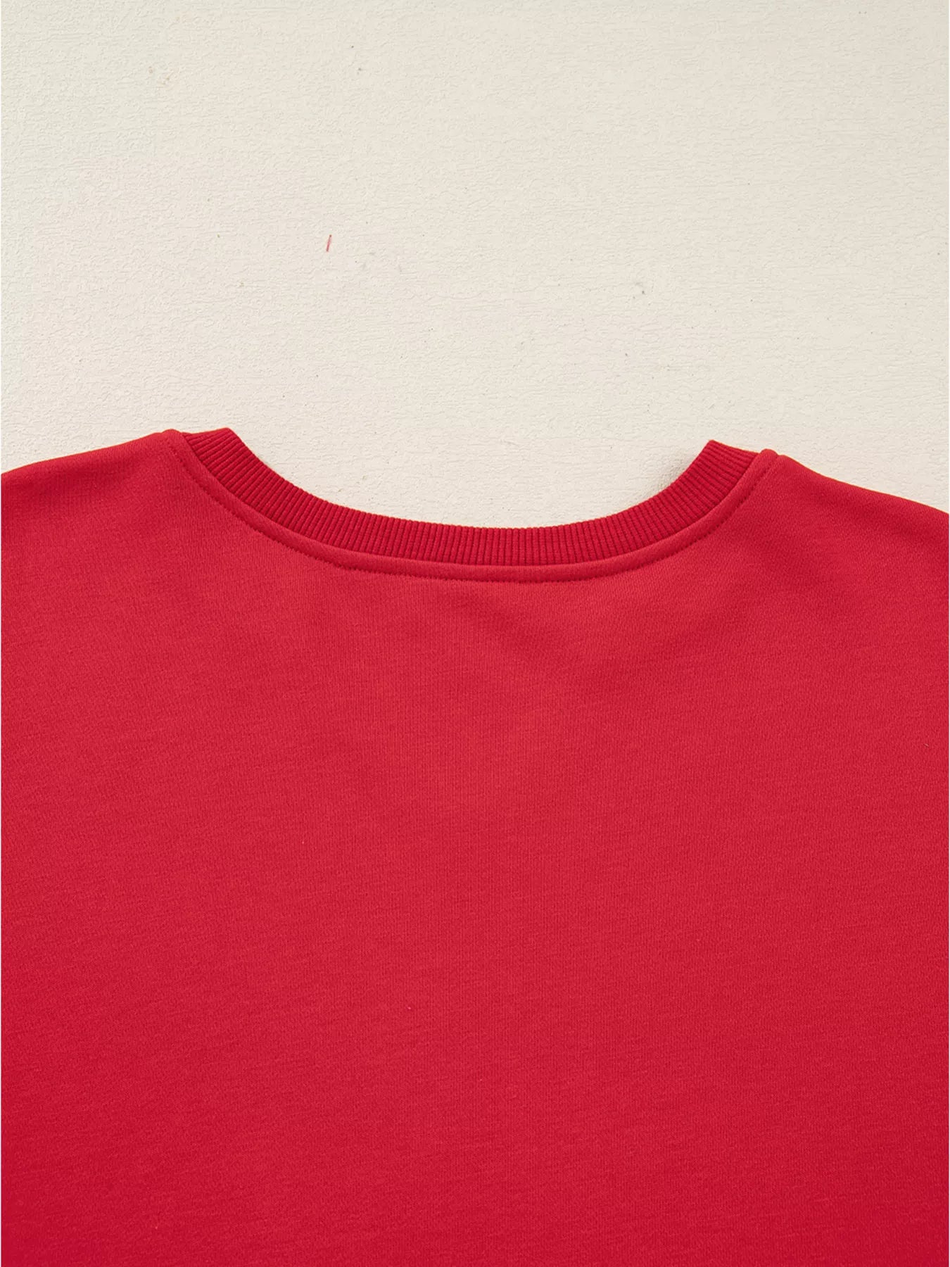 Plaid Frayed Double Christmas Tree Patched Drop Shoulder Sweatshirt