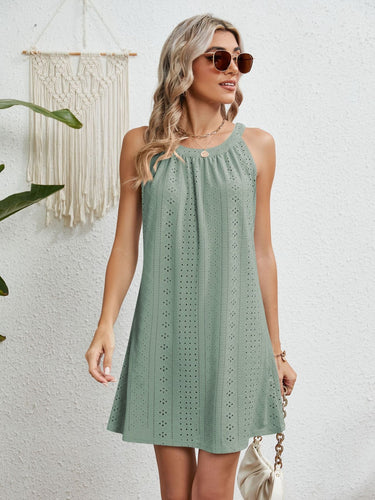Eyelet Grecian Neck Mini Dress